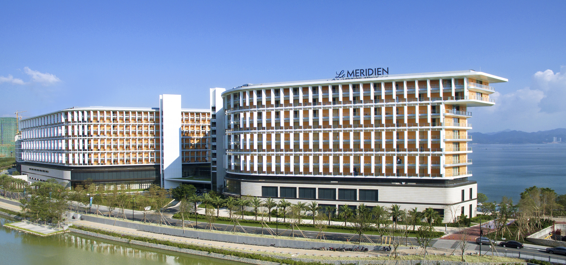 酒店總平面呈“M”型布置,建筑北側為主入口,南側向海邊敞開,整體布局規(guī)整。充分利用外部海景資源,令更多客房享受到優(yōu)質的海景。“M”型布局令建筑兩個塔樓四個面海開放的立面,具有強烈的在空間歸屬感,同時也能滿足每間客房都獲得其最大的觀海視野和最好的觀海視線?!癕”型布局保持適度的建筑密度,以創(chuàng)造親切宜人的步行尺度與園林景觀,保證度假氛圍,在空間組織上保證與海洋沙灘等優(yōu)質景觀的互動。